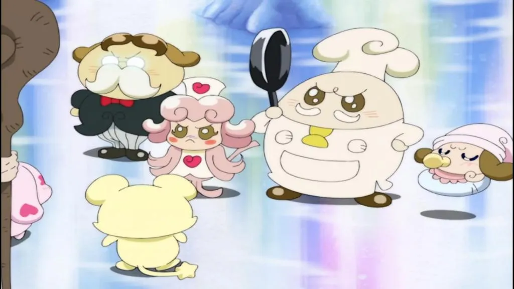 宮殿で二人を迎えたのは、光の園の長老。しかし、彼はとても忘れっぽく、**「伝説の戦士」**という言葉を忘れたり、なぎさとほのかの名前を「洋子さんとけ子さん」と呼び間違えたりする始末。他の妖精たちからも「遊んでばっかり」「いちゃいちゃしすぎ」とメップルたちの怠惰を暴露され、どこか頼りない雰囲気が漂う。