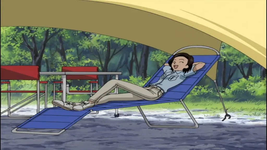 美墨一家とほのかとキャンプに同行。さかなを捕獲しようとして川に飛び込む。翌朝二度寝する