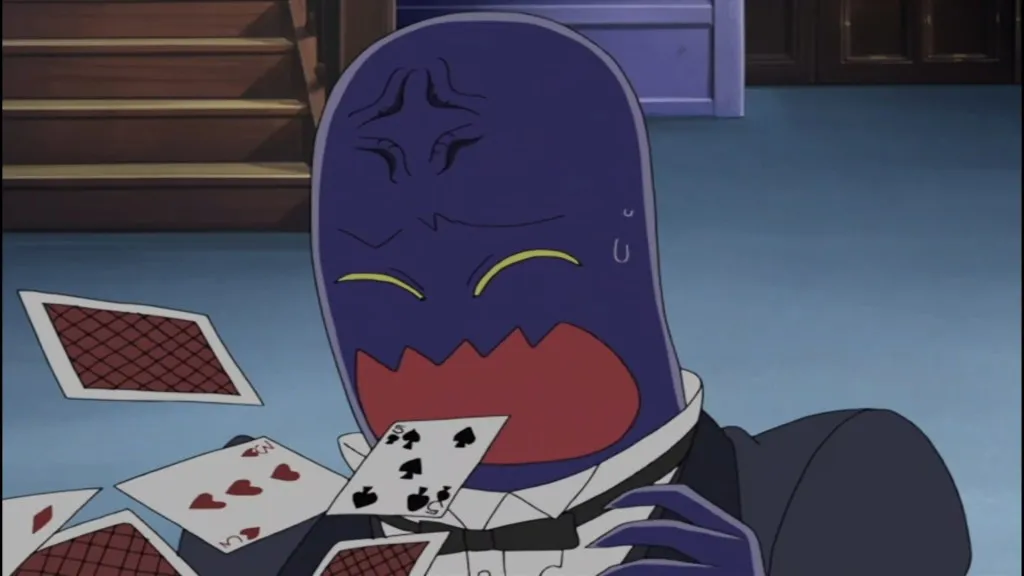 トランプタワーを勧めるが相手にされず、Aに手品を振られ口からトランプを披露するが失敗、